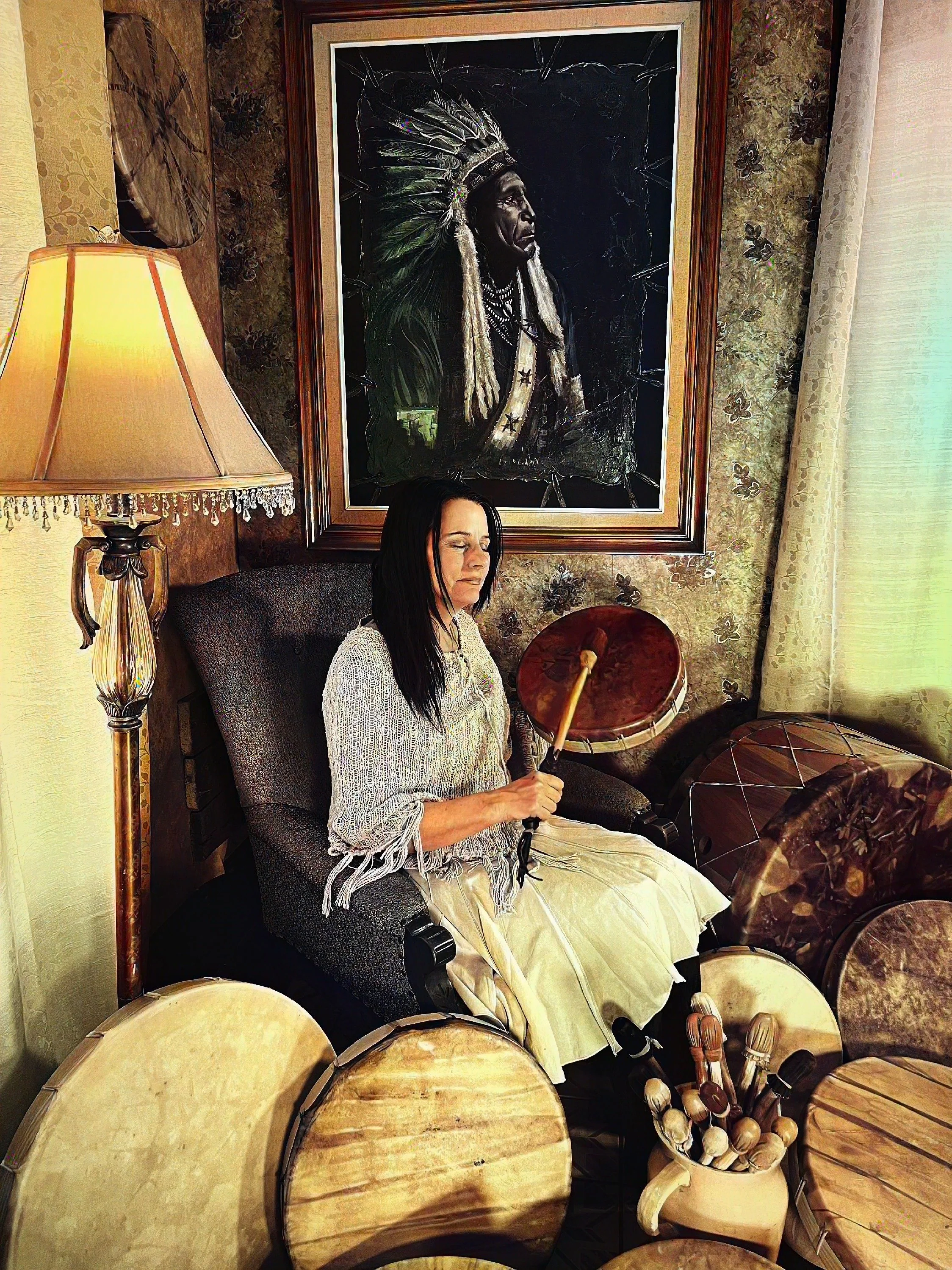 “‘I first saw Michelle’s quietly powerful drums in a 2021 exhibition at the DeCoste Theatre Gallery, in Pictou, Nova Scotia. I was struck by the purity of the design. It was clear they were beautifully constructed from materials directly harvested from the earth... or as Michelle would say, ‘Mother Earth’. My impressions of the work were confirmed by watching a number of her compelling short videos of her making. These deepened my understanding of her work, of her self, and of the indigenous culture that is a strong element of her heritage. Her spiritual connections to the earth are transmitted through her art works, her voice, her music, her poetry. They are her gift to the world.”
